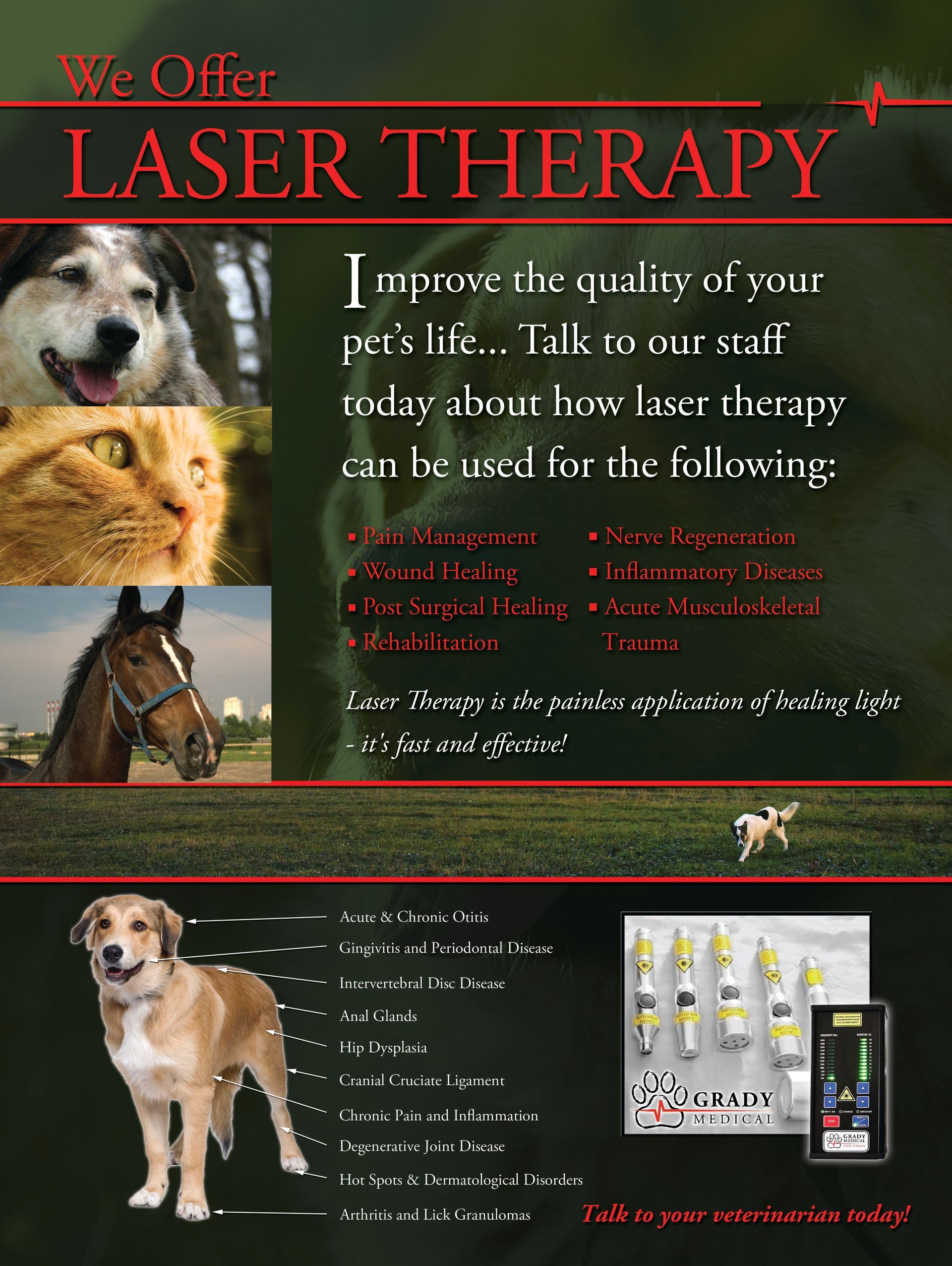 Red Oak Animal Hospital is proud to offer Medical Laser Therapy to our Patients. This relatively new technology will give us a new and better tool to painlessly treat everything from wounds to arthritis. Call us for more information!